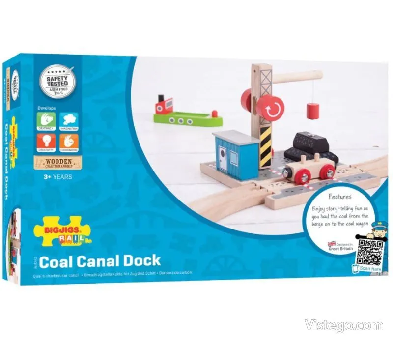 Заниманията с влаковия комплект носят радост и едновременно с това стимулират важни умения. Работата с макарата и точният „захват“ с магнит подпомагат фината моторика и координацията. Прехвърлянето на въглищния товар между карета и шлеп създава причина за планиране и последователност на действията, а самата игра естествено обогатява знанията чрез теми като транспорт и движение на стоки. Дървеният кран с магнитна макара насърчава силно въображението и креативността, защото всяко преместване може да стане част от нова история.