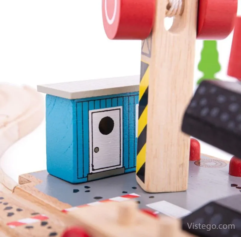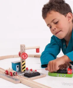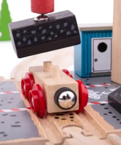 Ако търсите смислено допълнение към влаковата композиция, дървеният кран с магнитна макара добавя реалистична дейност и повече възможности за игра. Той подпомага създаването на разнообразни сюжети, прави пренасянето на товар част от приключението и поддържа интереса с нови сценарии всеки път.