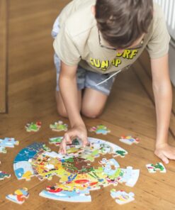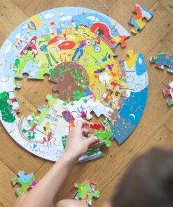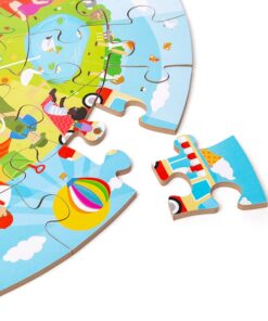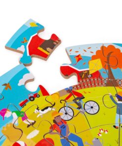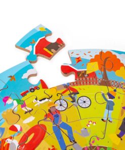 Дървен кръгъл пъзел със сезоните Bigjigs. Този ярък кръгъл пъзел от 50 части е внимателно изработен и предназначен да очарова и образова младите умове. Въображението на децата е пленено, докато гледат сезонната сцена на техния дървен пъзел да се разгръща, парче по парче. Поставете частите на мозайката заедно, за да създадете красива 360-градусова сцена. Размерът на подовия пъзел го прави идеален за групова игра, тъй като други могат да се присъединят към забавлението. Открийте сезоните и кои зеленчуци могат да се засаждат по време на годината, докато изграждате пъзела парче по парче. Този кръгъл пъзел е направен от висококачествени материали с отговорни източници и отговаря на настоящите европейски стандарти за безопасност. Разгледайте още от категорията “Дървени пъзели” ТУК!