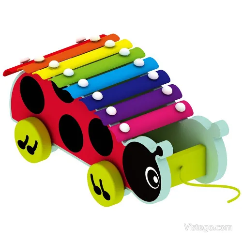 Ксилофонът е забавен начин детето да развива усещане за ритъм и интерес към музиката чрез игра. Съчетаването с дърпане подпомага координацията очи-ръце, а повтарящите се движения насърчават по-добра моторика на ръцете. Дървеният ксилофон с колелца създава възможност за кратки „музикални паузи“ в ежедневието и за игри, в които детето само избира дали да се движи или да свири.