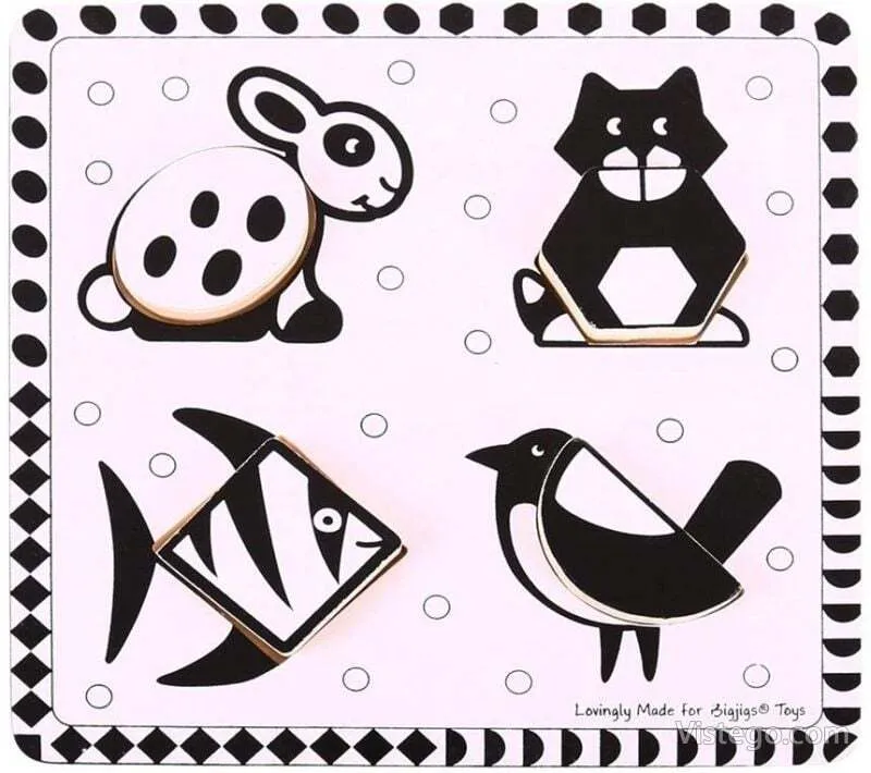 Дървен пъзел в черно и бяло с домашни любимци Bigjigs. Този дървен пъзел е специално проектиран в черно и бяло, поради факта, че черно и бяло са цветовете, които малките деца виждат и реагират най-лесно. Всяко от четирите парчета пъзел може да се постави в илюстрациите на животни и ще подпомогне развитието на вашето дете, докато се научи да разпознава и поставя всяко от тях. Всяко масивно дървено парче пъзел е с голям размер, за да улесни малките ръчички да го повдигат, хващат, разглеждат и подменят. Помага за развиване на сръчност, умения за съвпадение и концентрация. Изработен от висококачествени материали с отговорни източници. Отговаря на настоящите европейски стандарти за безопасност. 4 части от пъзел. Разгледайте още от категорията “Дървени пъзели” ТУК!
