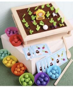Дървен пъзел за деца Ферма Kruzzel 22755. Комплектът включва дървена матрица, предназначена за игра с топчета от едната страна и ферма за памет от другата. В комплекта има карти за игра с памет, които указват какво трябва да се открие в градината. Пъзелът с дървени мъниста предоставя забавление и развитие на ръчните умения и въображението на детето. Освен това помага за развитието на координацията око-ръка и логическото мислене. Процесът на садене на зеленчуци и броене на мъниста представлява дълготрайна и забавна занимавка, която не омръзва бързо. Дървените играчки предлагат вечен източник на радост и са отличен начин за забавление с родителите или връстниците. Материалът, използван за играчката, е дърво, което е изключително безопасно за децата. Красотата и издръжливостта на дървото го правят високо ценен материал. Благодарение на натуралния му характер, играчката не влиза в контакт с изкуствени материали, правейки я безопасна, дори ако детето я постави в устата си. Този 2-в-1 комплект с мъниста и памет предоставя страхотно забавление за креативни деца, изработено от висококачествени материали като дърво и филц. Включва разноцветни елементи, които стимулират играта и забавлението на децата. Разгледайте още от категорията “Образователни играчки” ТУК!
