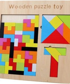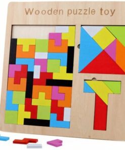 Дървен пъзел за деца 3в1 с цветни блокчета. 3в1 – пъзелът се състои от 3 различни вида пъзели за логическо сглобяване: Tetris, Tangram и T. Освен основните пъзели, направени от блокчета, вашето дете може да създава практически всичко. Частите могат да бъдат подредени във всякакъв модел. Включени са различни цветове на блоковете, така че можете да създадете още по-фантастични снимки. Детска играчка мозайка развива чудесно въображението и стимулира креативността. Тук можете да създадете почти всеки модел – трябва само да помислите за момент и да планирате подреждането на елементите. Играта с пъзел е чудесен начин за развиване на ръчни умения, сръчност, упражняване на координация на очите и ръката и практикуване на способността за логическо мислене. Децата също проявяват търпение и концентрация с играчката. Поставянето на пъзели в конкретни форми изисква концентрация и ярко въображение. Ярки, контрастни цветове добавят естетическа стойност и привличат вниманието на децата, както и насърчават многократната игра. Страхотен начин да се забавлявате с цялото семейство. Това ще позволи на родителите да прекарват времето си у дома по интересен начин и незабавно да прогонят скуката.