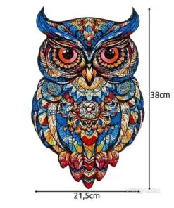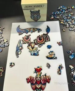 Дървен пъзел с мотив бухал е избор, когато искате занимание, което съчетава приятно подреждане и красив краен резултат. Формата следва силуета на птица, а многоцветните мотиви правят сглобената картина подходяща и като акцент в интериора. Дървеният пъзел е изработен така, че сглобяването да е комфортно, а предизвикателството да остава интересно за различни възрасти.