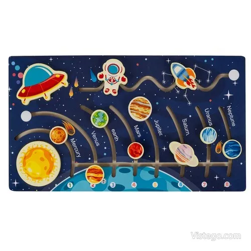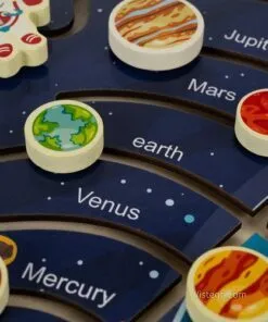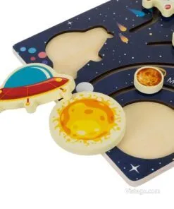 Дървен пъзел Слънчева система, който съчетава игра и учене с подвижни елементи и прецизна изработка за приятни ежедневни занимания.