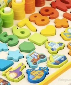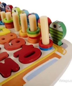 Пъзел сортер от дърво за увлекателна игра и учене – развива координация око-ръка, логическо мислене, търпение и работа с цветове.