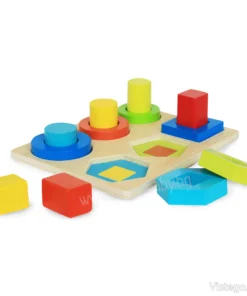 Редуването на вземане, завъртане и поставяне подпомага фината моторика на ръцете и пръстите. Търсенето на точната комбинация развива логиката и координацията, а нуждата от прецизност насърчава вниманието и устойчивата концентрация. Когато детето сравнява геометрични фигури и различава цветовете, то естествено започва да разпознава основните геометрични форми и да прави връзки между визуален модел и действие. В описанието на продукта може да срещнете и формата „дървеният пъзел сортер“, която обозначава същия тип играчка.