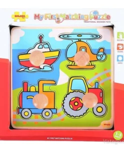 Дървен пъзел с дръжки Превозни средства Bigjigs. След като всички части на пъзела са поставени, живата транспортна картина се събира! Къде отива хеликоптерът? Ами влака? Пъзелите Bigjigs Toys помагат за развитието на речников запас и помагат на децата да разпознават форми, цветове и изображения. Лесните за повдигане дървени части от пъзела имат масивна закрепена дръжка на всяко парче, така че малките пръстчета да могат лесно да го повдигнат. Частите на пъзела също са с голям размер, за да улеснят ръцете при повдигане, хващане, разглеждане и подмяна. Помага за развиване на сръчност, умения за съвпадение и концентрация. Дървените основни дъски на пъзелите Bigjigs Toys са отпечатани с изображения или цветове, за да подпомогнат учебния процес и да добавят образователна стойност. Изработен от висококачествени материали с отговорни източници. Отговаря на настоящите европейски стандарти за безопасност. 4 части от пъзел. Разгледайте още от категорията “Дървени пъзели” ТУК