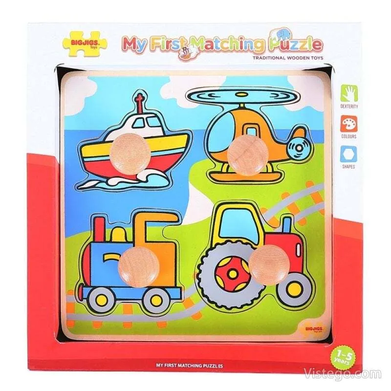 Характеристики на Дървен пъзел с дръжки Превозни средства Bigjigs: