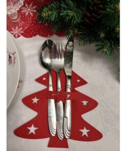 Държач за прибори на маса Елхи 12 бр. Ruhhy 22304. 12 ЧАСТИ В КОМПЛЕКТ – целият комплект има цели 12 калъфа. Комплектът е страхотен Идеален за голямо семейство или за гости на празнично парти. 2 В 1 – комплектът за прибори може да се използва не само като калъф за прибори. Чудесно работи като подложки за топли напитки или коледни напитки! КОЛЕДА – красивите декоративни държачи за прибори с мотив за коледна елха са чудесна декорация на масата по време на празничния сезон. Покритията за прибори от коледната серия ще направят Коледа още по-красива. УНИВЕРСАЛНА УПОТРЕБА – калъфите за прибори могат да се използват както у дома, така и в ресторанти, хотели и къщи за гости. Което прави всяка храна уникална и празнична. Калъфите за прибори са практично и естетично решение, което може значително да подобри външния вид на масата по време на различни тържества и трапези. Тяхната гъвкавост и декоративен потенциал ги правят популярно допълнение към аранжировките на масата. Нашите калъфи ще работят чудесно и като подложки за чаша топла напитка. Разгледайте още продукти в категорията “КОЛЕДА” – ТУК!