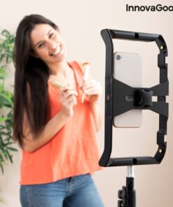 Държач за смартфон с ръчен стабилизатор InnovaGoods позволява да правите висококачествени снимки и видеоклипове, като стабилизирате изображението, постигайки професионален резултат с оптимална разделителна способност. Неговият регулируем дизайн, осигуряващ здрав, сигурен и стабилен захват, го прави подходящ за повечето смартфони на пазара. Този многопозиционен и многофункционален държач за мобилен телефон е много гъвкав и адаптивен, тъй като може да се използва ръчно или като статив. Има няколко дупки и процепа за лесно поставяне в статив (хоризонтално или вертикално) и за поставяне на други аксесоари (не са включени), които помагат за подобряване на крайния резултат, като прожектор, микрофон и т.н. За ръчна употреба, той разполага с две удобни странични дръжки, с които да го държите и така да може да се борави лесно с една или две ръце, поставяйки го в желаната позиция по всяко време с пълна свобода на движение. Освен това е лек, преносим и лесен за транспортиране и съхранение.