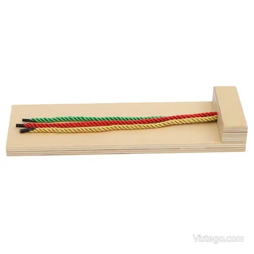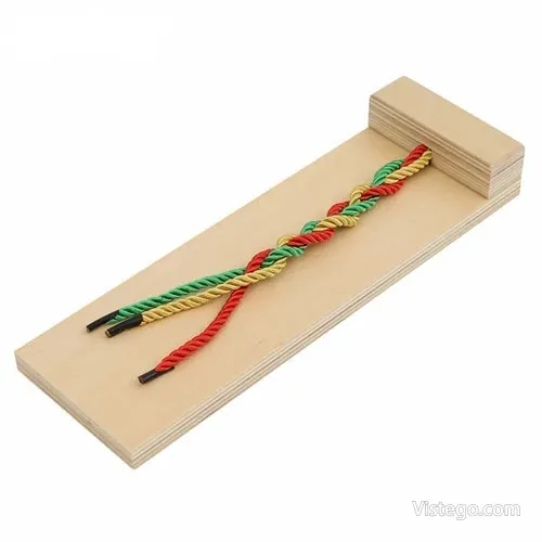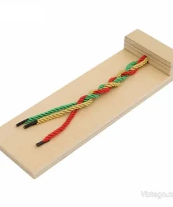 Дъска за сплитане, която развива сръчност и концентрация чрез видим модел, цветни връвчици и възможност за самокоригиране.