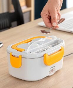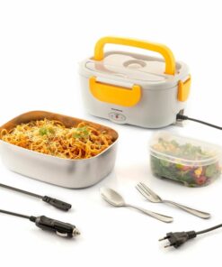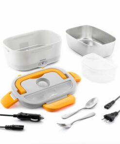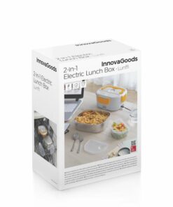 Електрическа кутия за обяд InnovaGoods. Тази електрическа кутия за обяд за офис и кола затопля храната лесно. Включва лъжица, вилица, 2 подвижни контейнера, 2 свързващи кабела, парен клапан, непропускливи страни, 4 предпазни капачки и сгъваема дръжка. Макс. 90ºC, 60 W, 1,05 L. Пълна електрическа кутия за обяд, която е изключително удобна за затопляне на храна на работа без микровълнова печка. Идеален за наслада от домашно приготвена храна навсякъде и по всяко време. Капак с прибори и клапан: нашата електрическа кутия за обяд е с капацитет от 1,05 L. Капакът има вентил за изпускане на пара и отделение за прибори, което включва лъжица и вилица от неръждаема стомана. Капакът също има 4 предпазни затваряния, непропускливи страни, което осигурява оптимално уплътняване и сгъваема дръжка за носене. Контейнер от неръждаема стомана: тази електрическа кутия за обяд ще ви позволи удобно и безопасно да затопляте храни. Вътре има подвижен контейнер от неръждаема стомана, в който да поставите храната, която искате да затоплите. Пластмасов контейнер с капак: нашата електрическа кутия за обяд включва и малък пластмасов контейнер с капак за салати, десерти или други храни, които не искате да загрявате. Този аксесоар е напълно независим и може да се сваля. Подвижни кабели за кола и офис: тази електрическа кутия за храна има мощност от 60 W и може да достигне температура до 90 ºC. Включва 2 подвижни свързващи кабела: единият кабел има 12V адаптер за свързване към гнездото на запалката на автомобила, а другият кабел има щепсел за свързване към електрическата мрежа в офиса или на друго място. Лесен за използване, пренасяне, почистване: нашата многофункционална електрическа кутия за храна е лека и компактна, лесна за пренасяне и съхранение. Можете да го вземете на работа и да затоплите храната си бързо и лесно в колата или офиса, без да имате нужда от микровълнова печка. Контейнерите за храна могат да се свалят и могат да се мият в съдомиялна машина.Със своите два контейнера – единият от неръждаема стомана за затопляне на храна и другият пластмасов за салати или други храни, които не се изисква да се загряват, тази кутия предлага гъвкавост и удобство за различни предпочитания. Тя е мощна, достигайки температура до 90 ºC с 60 W мощност, и включва два подвижни кабела – единият за свързване в колата чрез запалката (12V адаптер) и другият за свързване в офиса или вкъщи. Тази кутия за обяд е лесна за използване и пренасяне, благодарение на компактния си дизайн, възможността за почистване в съдомиялна машина и удобните за сглобяване и разглобяване контейнери. Представлява практично и удобно решение, позволяващо на всеки да наслади храна от вкъщи навсякъде и по всяко време, без усложнения. Разгледайте още продукти в категорията “Електрически кутии за храна” – ТУК!