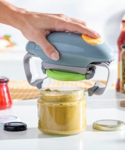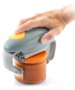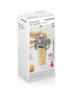Електрическа отварачка за консерви и буркани InnovaGoods. Тази електрическа отварачка за буркани ви позволява да отваряте стъклени буркани без усилие и удобно с натискането на един бутон, като ръцете ви остават свободни. Подходяща за буркани с различни размери. Захранва се от 2 x AA батерии (не са включени). Тази модерна и практична автоматична отварачка за буркани е перфектната джаджа за възрастни хора, всеки с нараняване или ограничена сила в ръцете си и т.н. Изключва се автоматично. Автоматична отварачка за буркани: нашата електрическа отварачка за буркани прави задачата за отваряне на буркани много по-лесна. Благодарение на своята автоматична система за лесно отваряне, той държи ръцете ви свободни по всяко време. За употреба само със стъклени буркани, не е подходящ за пластмасови буркани. Захранва се от 2 x AA батерии (не са включени). Лесен за използване: тази автоматична отварачка за буркани е идеалното решение за отваряне на буркани в пълен комфорт и без никакви усилия. Просто натиснете бутон, за да започнете процеса на отваряне и изчакайте да приключи. Долните рамена на устройството държат буркана, горните рамена държат капака и след това се завъртат на 180°, когато бурканът се отваря. Автоматично изключване: тази електрическа отварачка за буркани се изключва автоматично, когато процесът на отваряне на буркан приключи. Не е необходимо действие, просто изчакайте горната и долната част на ръцете да се върнат в първоначалната си позиция и устройството се изключва, когато приключи. Регулируема, универсална: нашата иновативна електрическа отварачка за буркани пасва на множество буркани и капаци с различни размери. Може да се използва върху капачки с диаметър от 3 см до 8,8 см и върху буркани с диаметър от 4 см до 10 см. Препоръчителна употреба: тази автоматична отварачка за буркани е задължителна практична джаджа във всяка модерна кухня. Създаден да помага при ежедневни задачи, той е идеален за по-възрастни хора или всеки с нараняване или ограничена сила в ръцете си и т.н.