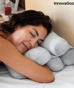 Ергономична възглавница за стол 3в1 InnovaGoods. Многофункционална и многофункционална модулна възглавница с оригинален и универсален многопозиционен дизайн, който се адаптира лесно към различни пози (легнала, седнала, легнала и др.) в зависимост от вашите нужди и предпочитания по всяко време и място. Може да се използва в множество настройки, като дома, офиса, колата и т.н. (на дивани, столове, легла, на пода…), както и за различни дейности, като например работа от дома, пътуване, четене, релаксация, сън и т.н. Тази оригинална ергономична възглавница с тръбен дизайн се състои от 5 свързани модула, които могат да се сгъват и разгъват лесно, за да постигнат различни приложения и позиции. Освен това е много удобен и удобен, чудесен за почивка и релаксация, лек е и много мек и има приятно кадифено усещане. Структурата му помага за подравняване на гърба, шията и лумбалната област. Той е изключително практичен и предотвратява необходимостта от използване на няколко възглавници. Също така си струва да се отбележи, че не губи формата си и лесно се приспособява към всяка позиция на тялото. Може да се пере ръчно, за да остане чист.