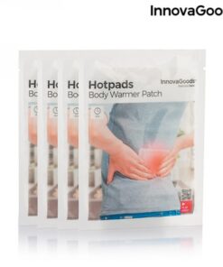 Загряващи лепенки за болки в гърба InnovaGoods. Топлинни лепенки, които се активират лесно, когато обвивката се свали и са в контакт с въздуха. Те предлагат огромно облекчение и усещане за благополучие в локализираните области на тялото, където се прилагат, главно на гърба, шията и корема. Благодарение на залепващия си дизайн и представяне в индивидуални пакети, те са много лесни за използване и могат да бъдат взети навсякъде, за да се използват, когато е необходимо.