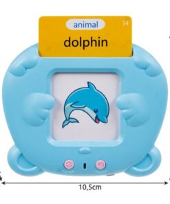 Играчка за учене на английски език в син цвят Kruzzel 21838. Четецът на карти за обучение по английски език Kruzzel 21838 е образователен инструмент, предназначен специално за деца, които желаят да научат основни думи и фрази на английски език. Този компактен и интересен уред предоставя забавен начин за учене чрез повторение и визуално възприятие на думите и изразите. Един от ключовите аспекти на този четец е възможността му да проговаря думите от картите на английски език. Когато детето постави картата на четеца, малкият мечето ще произнесе думата от картинката, която представя. Това позволява на детето да чуе правилното произношение на думата и да я повтори след него. Ако има нужда от повторение, детето може да натисне бутона „ПОВТОРЕНИЕ“ и отново да чуе думата. Чрез тази интерактивна функция децата могат да учат нови думи и фрази по-лесно и ефективно. Комплектът включва 112 двустранни карти, което означава, че има цели 224 илюстрации, представящи разнообразни теми и категории. Картите са разделени в различни цветове и предлагат лексика от средства, животни, храни, цветове, форми, цифри, дейности, инструменти и много други. Този широк спектър от думи позволява на децата да се запознаят с различни аспекти на ежедневието и околната среда на английски език. Четецът играчка разполага с вместителна батерия с капацитет от 300mAh, която осигурява до 5 часа обучение. Зареждането на уреда става бързо, за около 80 минути. Допълнителното предимство на четеца е автоматичното изключване след 5 минути бездействие, което гарантира по-дълъг живот на батерията и спестяване на енергия. Размерите на картите са 9 х 6 см, а на четеца 11 х 10 х 2,2 см, което го прави лесен за употреба и преносим при нужда. В комплекта са включени и USB – microUSB кабел за зареждане и 112 карти с думи. Този четец на карти е чудесен начин за подобряване на уменията на децата в изучаването на английски език. Подходящ е за деца в различни възрасти и може да се използва както в домашни условия, така и в учебни среди. Отличава се с интерактивен дизайн и обучаващ подход, които ще забавляват и мотивират децата да се учат и разширяват своите езикови умения.