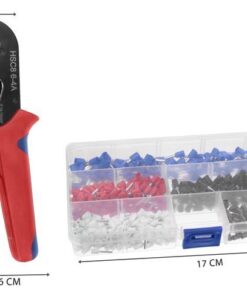 Инструмент за кримпване на клеми и втулки 0.25-10mm2. Инструментът за кримпване на накрайници има широка гама от кримпване. Предназначена е за кримпване на изолирани и неизолирани втулки с размери от 0,25 до 10 мм2.- Включена в комплекта опакована в практичен калъф/органайзер, ръкави различни размери (общо 500 бр.). стомана, която се отличава със своята издръжливост. Високото качество на материала прави уреда издръжлив с години. Кабелната преса е с ергономична дръжка, благодарение на която позволява стабилно захващане, а също и използването ѝ не изисква много сила и не е уморително, благодарение на добре балансирания лост.