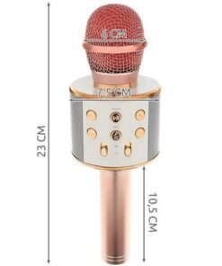 Докато пеете, микрофонът ви позволява да регулирате силата на звука, фоновата музика, басите и високите честоти. Благодарение на намаляването на шума гласът ще звучи ясно, а промяната на гласа ще добави увереност към певеца и ще изненада всички, които слушат. Микрофон също ви позволява да приложите ехо ефект, който ще ви позволи да получите ефекта на DJ, който свири в клуб. Блестящ метален цвят винаги е много горещ. Дизайнът е допълнен от финото осветление на високоговорителите, които светят в синьо, когато са включени. Има цели 4 цветови версии на микрофоните, от които можете да избирате – черен, сребрист, светло розов и розов. Това е страхотна идея за подарък, независимо от възрастта. Разгледайте още продукти в категорията “Бутуут колонки” – ТУК!