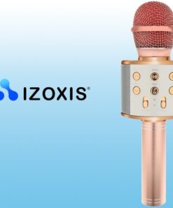 Караоке микрофон с говорител в меден цвят Izoxis. Микрофон за караоке с два високоговорителя, позволява слушане и запис на песни; свързва се с външни устройства (напр. телефон, таблет, SMART TV с операционна система ANDROID или IOS) чрез Bluetooth 4.0 или включения кабел. След сдвояване звукът ще се възпроизвежда от високоговорителите на микрофона. Трябва да включите музиката, приложението за караоке или видеоклипа в YouTube в устройството, след което ще чуем музиката в високоговорителите и сдвоеното устройство ще покаже текста.