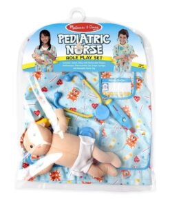 Карнавален костюм за деца Педиатърска сестра . Този комплект за игра на има всичко, с което малките медицински сестри да се грижат за новородено бебе – включително бебето! Сестрите в могат да се облекат с веселата, неутрална по пол униформа (в комплект с персонализиран таг за идентификационен номер на болницата), след което да напълнят джобовете с инструменти за игра. С включеният стетоскоп, термометърът и спринцовката помагат да се уверите, че всичко е наред с малкото новородено. Плюшената бебешка кукла има сменяем платнен памперс за лесни промени преди или след проверката и сладко усмихнато лице, което да насърчи емоционалната връзка и комуникацията. Разгледайте още от категорията “Детски карнавални костюми” ТУК