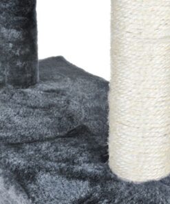 Катерушка за котки Сиво дърво 120 см. Драскалката под формата на дърво е с височина 133 см, разделена е на 5 етажа, през които котката може да се движи свободно и да мързелува, но и да дебне и да си играе с други котки. Здравата структура с широка основа осигурява стабилността на чесалото. Основното предимство на дървото е уютна къща, котето ще може да си почива свободно. Катерушката е изработена от сезалено въже от растителен произход, което е изработено от влакна агаве. Той е екологичен и следователно безопасен за нашите домашни любимци. Цялата е завършена с основа, покрита с мек косъм. Кръглите седалки и малка къщичка могат да се въртят – можете да ги регулирате идеално според нуждите на вашата котка. Драскалката се отличава с модерен и уютен дизайн, благодарение на който ще изглежда добре във всяка стая. Котешко дърво ще се впише перфектно във всеки интериорен дизайн – независимо от стила или аксесоарите. Разгледайте още продукти в категорията “Катерушки за котки” – ТУК!