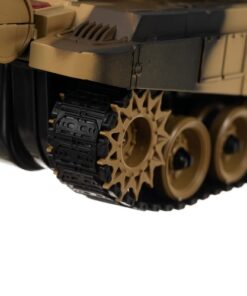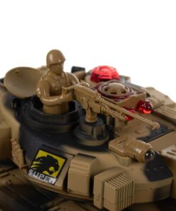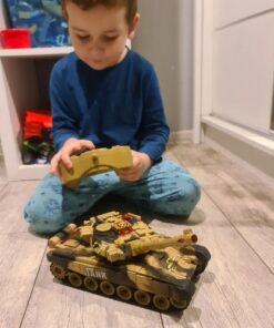 Кафяв танк с дистанционно Kruzzel. Комплектът включва дистанционно управление, което улеснява управлението на резервоара. Интуитивната употреба на дистанционното го прави подходящо за употреба от деца. Резервоарът се движи чрез две гумени вериги, които осигуряват здраво сцепление с терена и подобряват комфорта по време на битка. Тази окачване работи отлично дори на неравни повърхности. Реализмът на резервоара е подчертан от реакциите при стартиране на двигателя и стрелбата, предизвикващи вибрации в целия корпус. Осветлението и звукът допълнително стимулират въображението и придават на играта по-голям реализъм. Куполът може да се върти на 360 градуса, а горната част разполага с отварящ се люк, където се намира танкер с картечница, придавайки още по-голямо реалистично изживяване. Този резервоар с дистанционно управление е подходящ не само за деца, но и за възрастни, осигурявайки часове на забавление. С мощната си функционалност, той може да преодолява практически всякакъв терен. Съчетанието на светлини и звуци придава на танка реалистичен вид, стимулирайки въображението и насърчавайки вас да се забавлявате още повече. Разгледайте още от категорията “Дървени колички и камиони” ТУК!