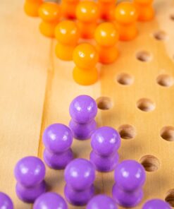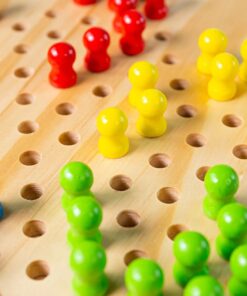 Китайски шах дървена настолна игра Bigjigs. Китайски шах е игра за 2-6 играчи, която включва кръгла дървена дъска и много различни цветни колчета. Всеки играч има 10 колчета в една от началните точки на звездата. Как се играе: Целта на тази дървена настолна игра е да поставите колчетата си до звездната точка срещу вашата. Първият играч, който направи това, се обявява за победител. Всеки играч се редува, за да премести своето колче напред, като се придвижи в една от съседните дупки или прескочи в дупка две колчета напред. Китайските шашки помагат на децата да развият своя стратегически ум, фини двигателни умения и координация ръка/око. Изработен от висококачествени материали с отговорни източници. Отговаря на настоящите европейски стандарти за безопасност. Разгледайте още от категорията “Настолни игри” ТУК!