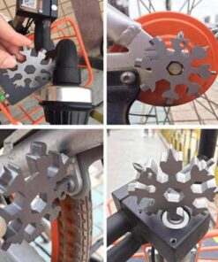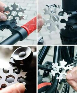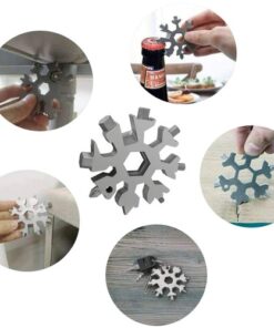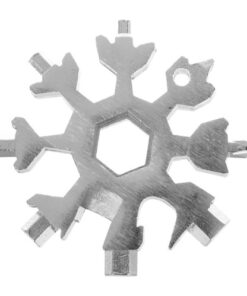 Ключодържател Снежинка 18 приложения. Представеният многофункционален ключодържател е универсален за използване – има цели 18 функции и може лесно да се използва както у дома, така и навън. Ще работи, наред с другото при ремонт на велосипеди и при отваряне на бутилки с капачки, както и по време на туризъм и много други дейности. Изработен от висококачествен материал, който е неръждаема стомана, благодарение на което е устойчив на корозия и всякакви механични повреди. Мултифункционалният ключодържател снежинка има компактни размери и тегло и уникален дизайн с форма на снежинка, така че можете да го носите удобно със себе си. есъмненото предимство на мултифункционалния ключ е, че има специален отвор, благодарение на който може да се прикрепи към халка за ключове и винаги да носите със себе си, например, заедно с други ключове. Включено: ключ за оцеляване „СНЕЖИНКА“ 18в1 + ключодържател:, шестостенни гаечни ключове, размери: 3, 4, 5, 6, 7, 8; размери на гаечни ключове: 6, 7, 8, 9, 10, 11, 12, 14; шлицова отвертка Phillips; отварачка за бутилки; резачка за кутии.