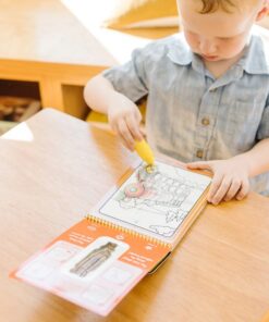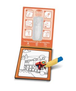 Книжка за оцветяване с вода превозни средства Melissa & Doug. Тази вълнуваща книжка за оцветяване с боя и вода включва четири страници за многократна употреба и писалка с вода за многократно пълнене. Просто използвайте писалката, за да оцветите всяка сцена – детайлите и живите цветове се появяват с всеки удар! След това оставете страницата да изсъхне, за да изтриете снимките и да я запълвате отново и отново. Тази книга на тема превозни средства включва четири сцени за оцветяване и дейност за търсене и намиране за всяка сцена. Водната писалка с големи размери е лесна за хващане от децата и се съхранява спретнато точно в предната корица, така че книгите Water WOW са идеални книги за занимания за пътуване и играчки за пътуване за деца! Разгледайте още продукти в категорията “Книжки за оцветяване с вода ” – ТУК