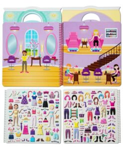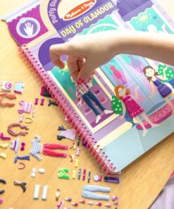 Книжка със стикери преоблечи дрехите Melissa & Doug. Day of Glamour Puffy Sticker Activity Book позволява на децата да разкажат история със стикери, изпълнена с модни забавления! Книгата със спираловидни връзки съдържа 10 фонови сцени, всяка от които е страхотен фон за героите да пазаруват, да се отпуснат или да се поглезят. Стикерите с герои могат да се наслагват с модни стикери, за да се създадат стилни ансамбли, които се движат с тях в книгата или вдигнете чисто платно, за да сменяте тоалетите отново и отново. Има общо 196 стикера за запълване на 10-те сцени за многократна употреба, включително моден бутик, салон за обувки, спа център, плот за гримове и др. Просто отворете книгата, за да станете част от модното приключение! Разгледайте още продукти в категорията “Творчески комплекти” – ТУК