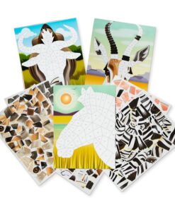 Книжка с мозаечни стикери Сафари Melissa & Doug. Сглобете стотици цветни стикери, за да завършите красиви животински сцени от сафари! Свържете 12 страници кодирани с номера стикери с номерираните пространства на 12 страници пищно нарисувани пълноцветни сцени и вижте животните от сафарито да оживяват. Листовете със стикери могат да се свалят за лесно съпоставяне. Забавно и лесно е за деца – а също и за възрастни – да създават мозайки от зебра, фламинго, жираф, хипопотам, носорог и други с повече от 850 стикера. Това е релаксиращ творчески проект за любителите на животни от седем годишна възраст! Разгледайте още продукти в категорията “Творчески комплекти” – ТУК