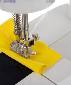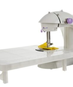 Компактна шевна машина с табла и педал. Машината позволява независими, експресни модификации по поръчка, без да напускате дома, което е удобно и икономично решение. Шевната машина може да се използва както чрез свързване към електричество чрез захранващия кабел (включен в комплекта), така и с помощта на 4 батерии АА (не са включени). Комплектът включва крачно задвижване, игла, 2 празни макари и 2 макари с конец, които ще улеснят работата. Благодарение на малкия размер и лекото тегло, машината може лесно да се транспортира. Включено: шевна машина, захранващ кабел, крачно задвижване, 2 x празни калерчета, 2 x макари за конци, игла, конец за игла, маса.