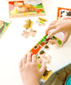Характеристики на Комплект дървени пъзели в кутия Животните от фермата Melissa & Doug: