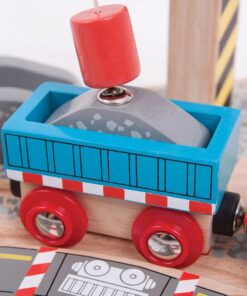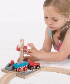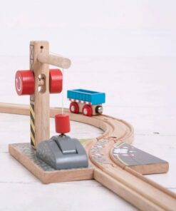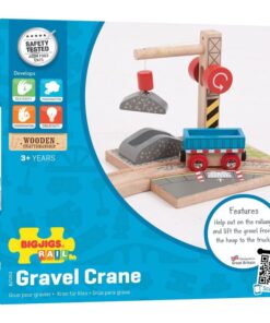 Комплект за дървени влакчета Дървен кран за чакъл Bigjigs. Превърнете вашата дървена железница в напълно работеща железопътна мрежа! Тази реалистична играчка кран за чакъл се предлага с напълно функционираща макара и представлява още един елемент към дървен комплект за влакчета. Магнитната макара на работещия кран позволява товарът от чакъл да бъде повдигнат и натоварен върху каретата, готова за транспортиране. Това е перфектният аксесоар за дървени влакове за ентусиастите на малки дървени железници. Образователна и забавна, тази детска играчка кран има безкраен обхват за ролеви сценарии. Повечето други големи марки дървени железопътни линии са съвместими с Bigjigs Rail. Изработен от висококачествени материали с отговорни източници. Отговаря на настоящите европейски стандарти за безопасност. Разгледайте още от категорията “Дървени влакчета” ТУК