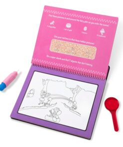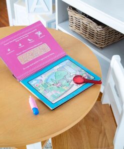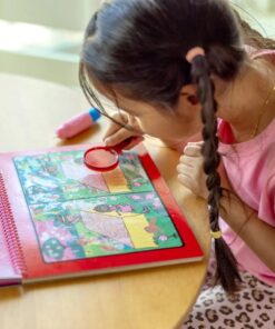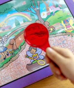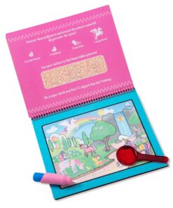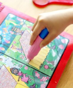 Комплект за рисуване с вода Приказен делукс Melissa & Doug. Тази вълнуваща книга с дейности за рисуване с вода и търсене и намиране включва осем страници за многократна употреба, писалка с вода за многократно пълнене и червена лупа. Просто използвайте писалката, за да оцветите всяка сцена от приказките, детайлите и живият цвят се появяват с всеки удар! Оставете страницата да изсъхне, за да изтриете снимките и да я оцветите отново и отново. Разкрийте скрити снимки с водната писалка, след това използвайте червената лупа, за да изследвате още повече в детайлните сцени! Водната писалка с голям размер и червената леща са лесни за държане от децата и спретнато точно в предния капак, което прави тази Deluxe Water WOW! идеална книга за занимания за пътуване и играчка за пътуване за деца! Разгледайте още продукти в категорията “Книжки за оцветяване с вода ” – ТУК!