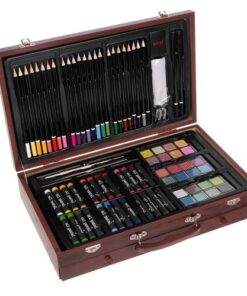 Комплект за рисуване 143 отделни части, млад художник децата ще създават изключително креативни и оригинални произведения на изкуството. Детски арт комплект съдържа много елементи, включително: 60 восъчни пастели, 24 пастели, 24 цветни молива, 24 акварела, плюс 2 четки, острилка за моливи, 2 шкурки, гумичка, два молива HB и 2B. С толкова широка гама от творения, от които да избирате, вашите деца ще използват въображението си и със сигурност ще създадат творчески шедьоври. Комплектът за рисуване е идеален за родители, които се грижат за развитието на детето си. Всички елементи от комплекта за художествена живопис се съдържат в специална дървена кутия. Това прави прехвърлянето на съдържание много лесно и удобно. Комплектът е леснопрносим, например в училище или на открито. Забележка: Не е подходящ за деца под 3 години. Препоръчва се наблюдение от възрастни.