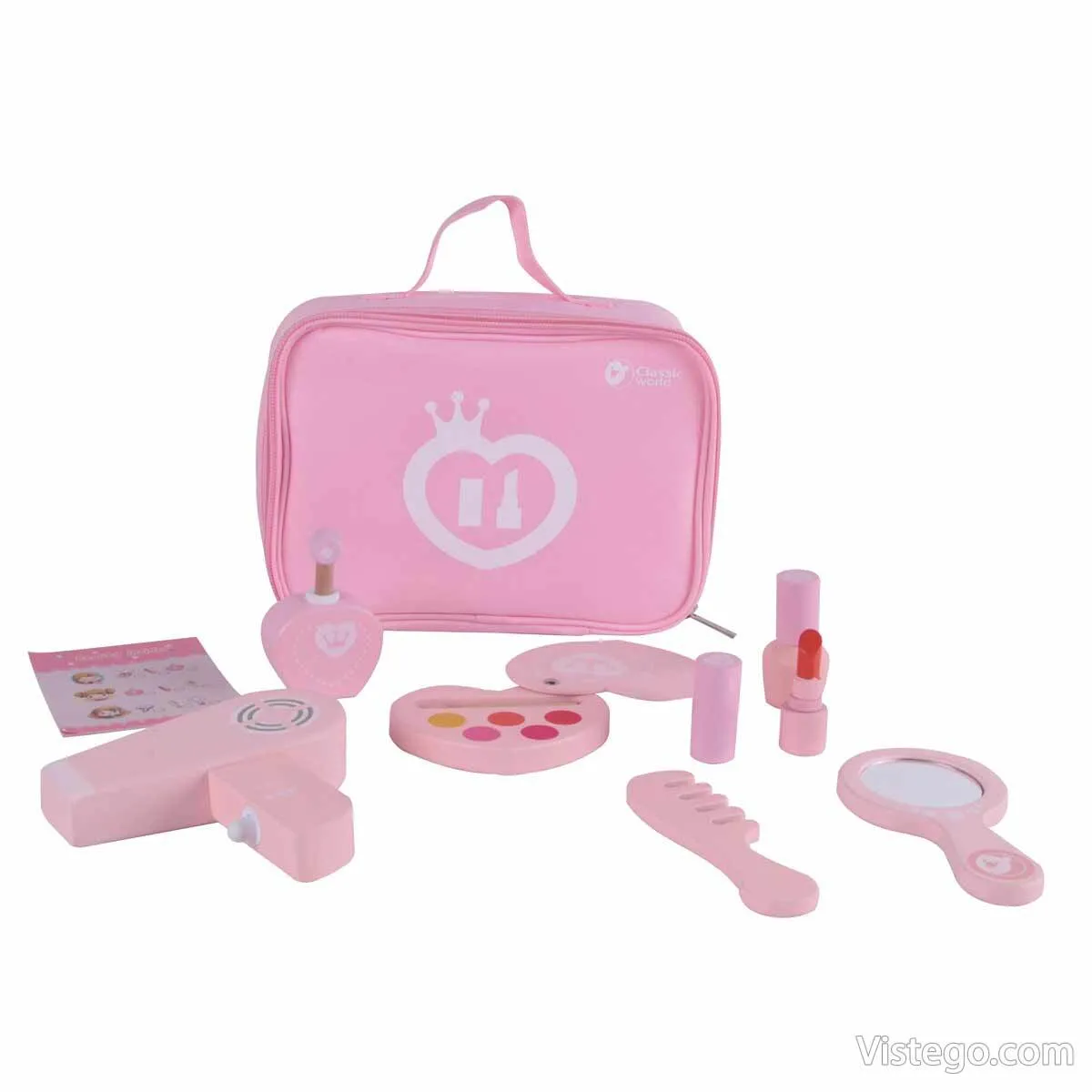 Този комплект за гримиране е детска играчка, създадена да привлича вниманието на малките любители на ролевите игри. Вместо случайни предмети, детето получава подреден набор от аксесоари, които помагат да се пресъздадат познати сцени от ежедневието. Така играта не е само „разглеждане“, а активен процес: избор на „инструмент“, измисляне на роля, подреждане, прибиране и започване на нова история.