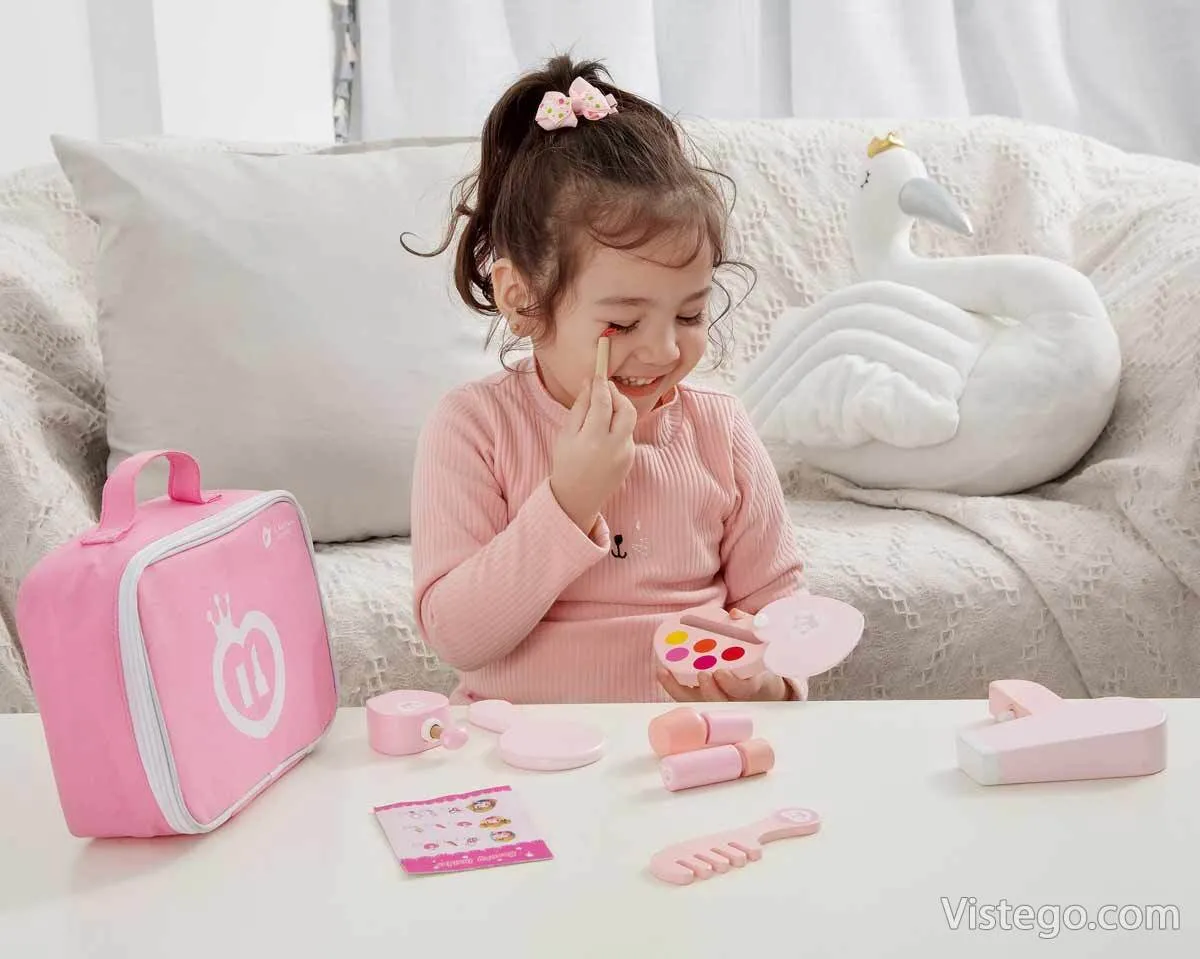 Комплект играчка за гримиране превръща ежедневната игра у дома в забавна имитация на света на възрастните, без да е нужен истински грим. Подбраните аксесоари насърчават ролевите ситуации, в които детето подражава, измисля истории и влиза в различни образи, а това прави играта по-богата и по-увлекателна.