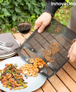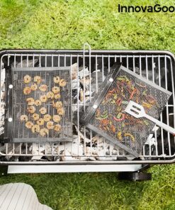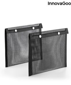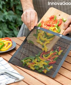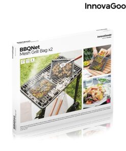 Комплект мрежести чанти за барбекю и скара InnovaGoods. Комплект от 2 мрежести чанти за барбекю, идеални за печене на зеленчуци и други дребни хранителни продукти, без те да залепват или падат в пламъците и да изгарят. Те са много практични и лесни за използване, просто поставяте храната в торбичките и ги поставяте на скара за барбекю (никога директно върху пламъците). Храните се приготвят по-добре и имат по-добър вкус, тъй като димът преминава през мрежата. Просто обърнете торбите, за да се приготвят от другата страна. Тъй като са вътре в торбичките, храните не се разпръскват и не падат в огъня, докато се готвят, а след като са сготвени, могат лесно да се отстранят благодарение на незалепващия материал. Чантите също се почистват лесно в съдомиялна машина. По-хигиеничен и ефективен начин за приготвяне на храна на барбекю. Разгледайте още от категорията “Барбекюта на дървени въглища” ТУК