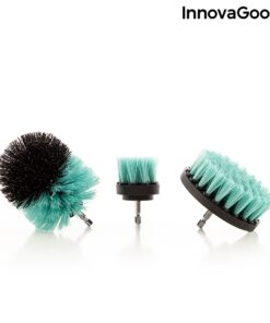 Комплект четки за бормашина InnovaGoods. Комплект от три четки за бормашини, идеални за дълбоко почистване на вани, душове, мивки, мивки, кранове, килими, тапицерия, колела, плочки и др. По-лесен, по-удобен и лесен начин за почистване и постигане на професионални резултати.