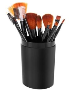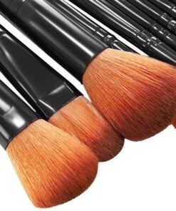 Комплект четки за грим в черно 12 бр. Синтетичните косми за производството на четките, които не предизвикват алергия, както естествените косми биха могли; това е и по-добро, екологично решение. Козметиката не остава върху четките, благодарение на което консумацията им е ниска – в сравнение с използването на естествени косми. Като използвате тези четки за гримиране можете да спестите, защото не се налага да купувате нови толкова често. Благодарение на различни видове и форми можете перфектно да нанесете грим върху цялото лице, включително очите и устните; всяка четка може да изпълнява различна функция. Косъмчетата на четките са изработени в стил омбре, черният комплект е комбинация от кафяво и тъмно кафяво. Освен естетичен акцент е и практично решение, защото евентуалните остатъци от грим не се виждат толкова много. Комплектът е опакован в затворен пластмасов калъф, който ви позволява удобно съхранение и транспортиране на четките. Край на разпръснатите четки! Разгледайте още продукти в категорията “Подарък за жена” – ТУК