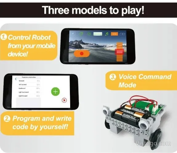 Комплектът позволява на децата да се запознаят с основите на програмирането чрез лесни и забавни експерименти. Те могат да управляват интелигентната кола-робот, използвайки различни инструкции и кодове. - Компактни размери и удобство
