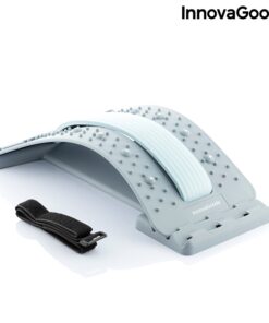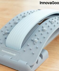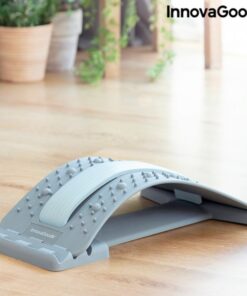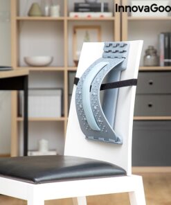 Коректор масажор за правилна стойка InnovaGoods. Регулируем лумбален коректор-протягател с натиск и магнитни точки, който осигурява дълбока релаксация и благополучие, особено за областта на гърба. Неговият ергономичен, многопозиционен и многофункционален дизайн е много гъвкав и адаптивен и устройството може да се използва както в седнало, така и в легнало положение. Действа като ефективен лумбален тренажор, коректор на стойката и масажор. Въпреки че основните му функции са лумбална опора и като облегалка, масажната му функция също е много полезна. Този опорен коректор помага за поставяне на гърба в правилна позиция и разтягане на лумбалната област чрез декомпресия на гръбначния стълб. Освен това възстановява естествената кривина на гръбначния стълб, бори се със сковаността и отпуска мускулите в тази област, което води до намалена болка в гърба, причинена от мускулно напрежение и лошо подравняване на гръбначния стълб. Разполага с централна защитна подложка, за да бъде по-безопасна и по-удобна за използване и фиксираща лента за закрепване към стола. Неговите три нива на височина позволяват да се регулира дъгата на кривината според нуждите или предпочитания по всяко време. Има точки на натиск и магнитни точки на повърхността, като дава масаж, който комбинира акупунктура с магнитна терапия по начин, по който статичните магнити действат върху молекулите и йоните на тялото, генерирайки много полезни ефекти. Освен това е компактен, лек, преносим, лесен за транспортиране и съхранение и е много устойчив, издържащ до 100 кг тегло. Препоръчва се за употреба преди или след всяка физическа активност или след периоди на продължително бездействие. Особено показан за хора, които прекарват много време в седнало положение, работят пред компютъра или извършват физически дейности, които могат да повлияят негативно на стойката и гръбначния им стълб. Идеален за офиса, дома, работа от разстояние, кола, фитнес и др.