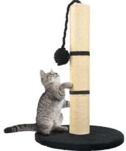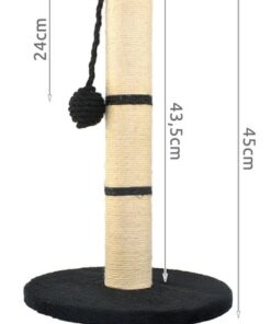 Котешка драскалка черен стълб 45 см. Характеризира се с висока механична якост и устойчивост на абразия. Прикрепената топка на връв осигурява много радост и забавление. Ако шнурът от сезал е износен, той може да бъде заменен. Основата с голям диаметър гарантира, че чесалото ще стои стабилно и няма да се преобърне, докато котката си играе. Драскалката се отличава с модерен и уютен дизайн, благодарение на който ще изглежда добре във всяка стая. Разгледайте още продукти в категорията “Катерушки за котки” – ТУК!
