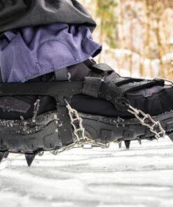 Крампи шипове против плъзгане XL Trizand. Еластични калъфи за обувки, оборудвани със стоманени шипове. Идеални са за туризъм, туризъм в гори и планини. С поставянето на скоби ще се справим по време на похода в трудни метеорологични условия като сняг и лед. Допълнителни ленти, закопчани с велкро, предпазват котките от изплъзване от обувките. ТЕ СА ЛЕСНИ ЗА СЪОБРАЗЯВАНЕ С ОБУВКИ – благодарение на използването на гъвкави TPE наслагвания, те могат да бъдат адаптирани към обувки с няколко размера от 44 до 47, без риск от изплъзване от обувката. Освен това имат шарнирна предна част за лесно ходене! Не изморяват краката, много са леки! Те се адаптират добре към всяка форма на обувката. Изработени от неръждаема стомана. Устойчиви са на ръжда и корозия. Просто опънете еластичната яка и я поставете върху подметката на обувката. Нашите дръжки няма да повредят обувките, тъй като те прилепват идеално към обувките, подсилените подложки на петата гарантират стабилност, особено при спускане. ПРАКТИЧЕН КАЛЪФ – дръжките за обувки са опаковани в практичен калъф с цип. Той е малък по размер, така че ще се побере в джоб на раница или дори в джоб на панталон. Винаги ще ги имаме с нас, когато имаме нужда от тях. Разгледайте още продукти в категорията “Къмпинг оборудване” – ТУК!