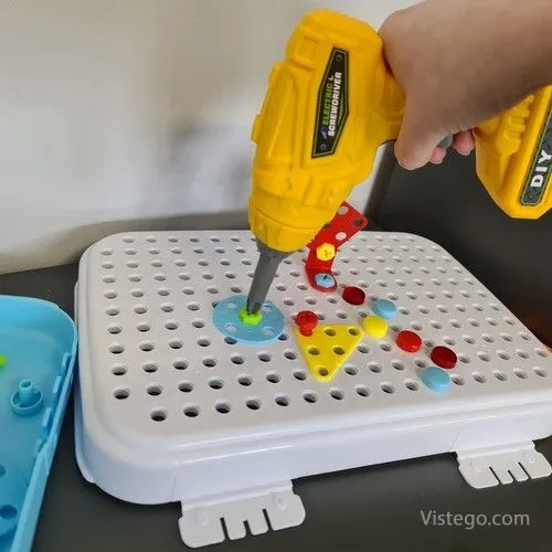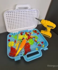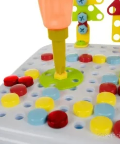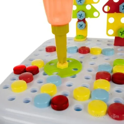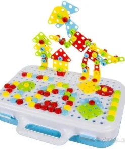 Креативна мозайка Kruzzel с куфар и интерактивен винтоверт за завиване и демонтиране. Забавна игра за сръчност, логика и концентрация.