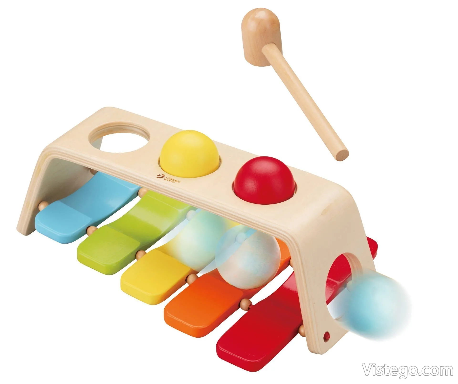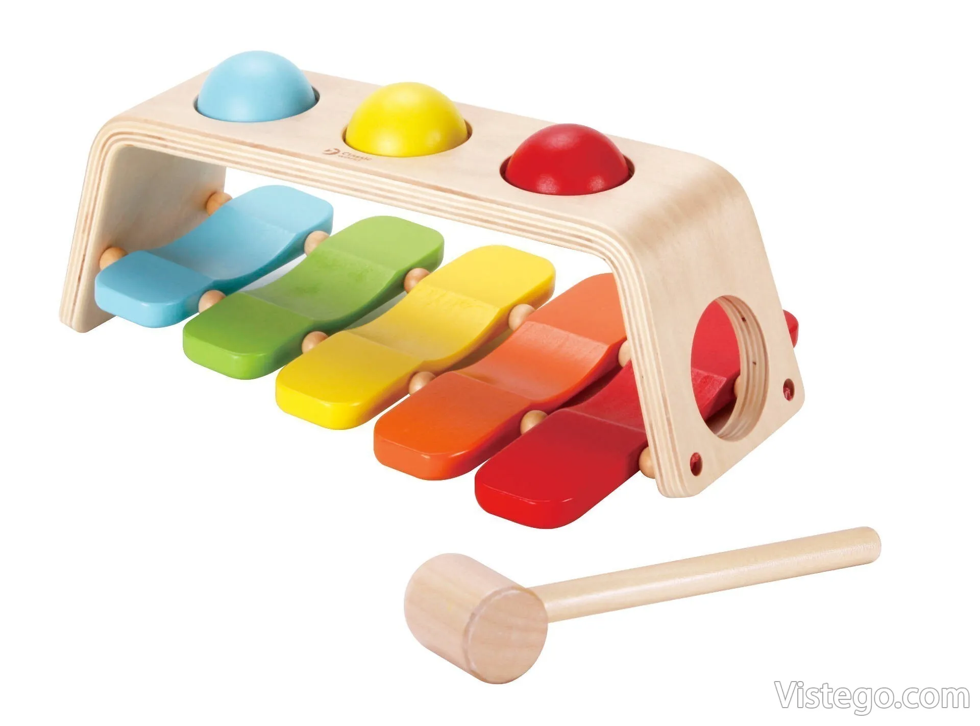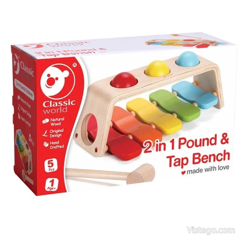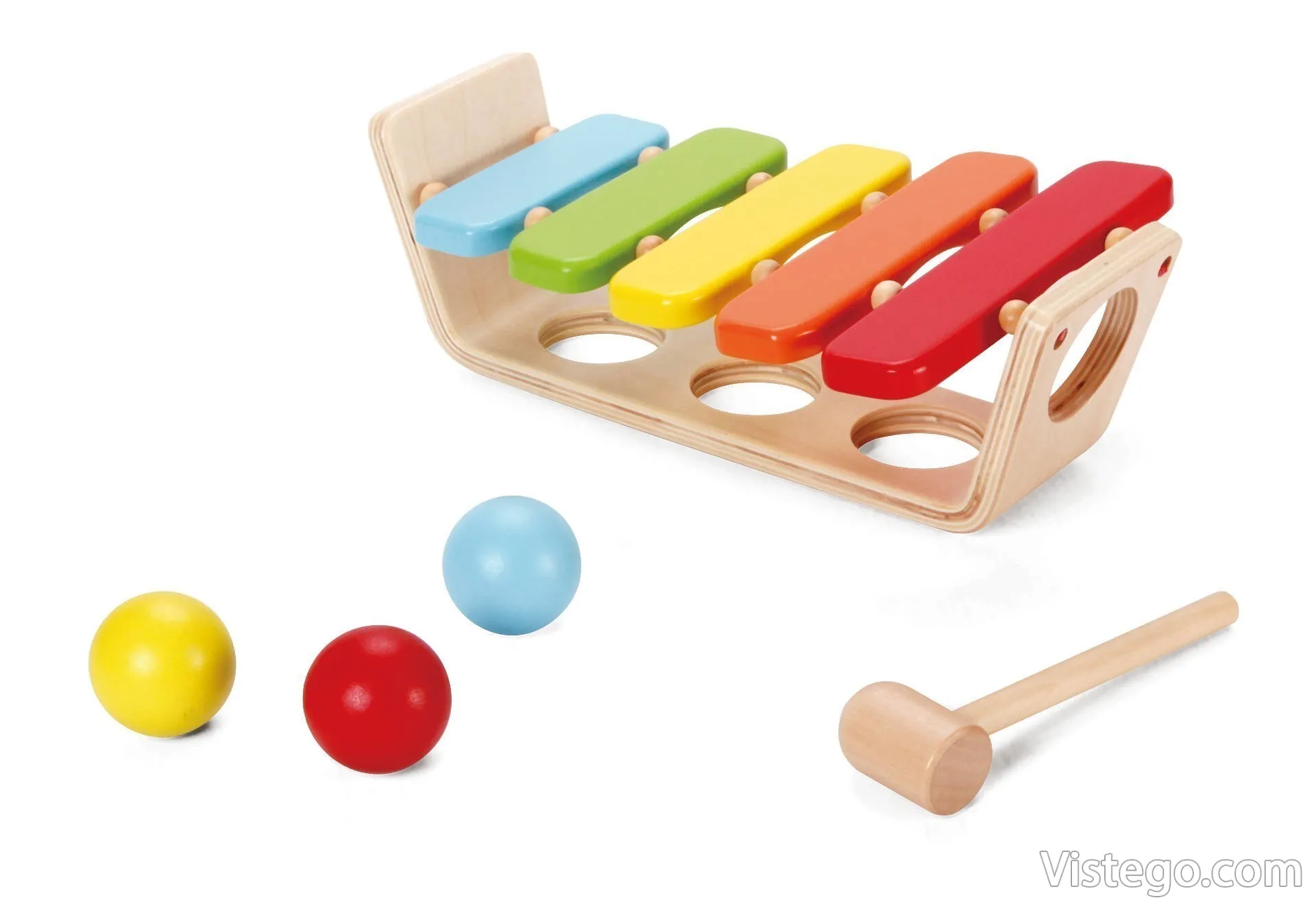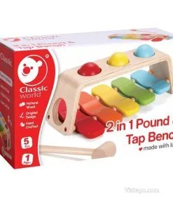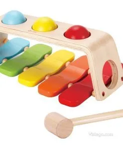 Тази ксилофон играчка съчетава простота и разнообразие: детето може да избира между удряне с чукчето и търкаляне на топката, като и в двата случая получава веднага звук и повод за нови опити. Ако търсите ксилофонът за деца да бъде лесен за игра и да поддържа интереса с различни действия, този вариант предлага точно такава практична музикална игра.