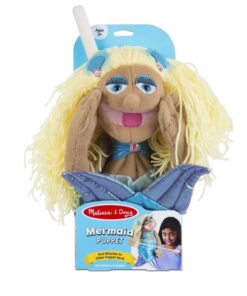 Кукла за куклен театър Мъпет русалка Melissa & Doug. Готова да заблести където и да е. Тя е с дълга руса коса и копринени дрехи. С едната ръчичка детето ви може да движи устата, както и лицевите изражения, а с другата да управлява ръчичките на русалката чрез подвижната дървена пръчка. Кукла за куклен театър русалка е страхотен избор за подарък за всяко дете. Посочената цена е за 1 брой. Разгледайте още от категорията “Кукли за ръце за куклен театър” ТУК!