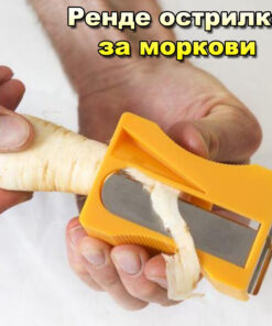 Кухненско ренде острилка за моркови и ряпа. Острилка за моркови е не само практичен кухненски инструмент, но и предизвикващ носталгия и весели спомени от ученическите години. Самото присъствие на острилка винаги ни връща към моментите, в които балансирахме моливите и се наслаждавахме на създаването на остри върхове. Въпреки това, тази острилка ни предлага нещо различно и забавно – вместо да заточваме моливи, този път ще подострим моркови! Острилката за моркови е изключително симпатична, развеселяваща и полезна вещ. Тя е снабдена с вградено ножче за белене, което ви позволява да почиствате моркови, ябълки, краставици и да смъквате кората на други зеленчуци и плодове. Самото ножче на ренде за моркови е предназначено за създаване на невероятно тънки ивички от моркови, които могат да се използват като уникална декорация за гарнитура на всякакви ястия. Това добавя визуален ефект и красота към вашите салати, гарнитури и ордьоври. Острилката за моркови е удобна за работа, благодарение на своята ергономична форма и грапава повърхност в участъка за хващане. Тя ще стане вашият любим инструмент за обработка на зеленчуци при приготвяне на салати, гарнитури и ордьоври. Без усилие и с лекота ще можете да подготвяте здравословни и апетитни храни. Това ренде за зеленчуци е с размери 8 см х 4 см х 5,5 см, изработка от метал и пластмаса, както и наличие на ножчета от качествена неръждаема стомана. Цветът на острилката е произволен и може да бъде различен. С острилката за моркови ще можете да създавате забавни и креативни зеленчукови декорации за вашите ястия. Тя не само ви осигурява практичност и функционалност, но и добавя игривост и веселие в кухнята. С възможността да подостряте моркови и други зеленчуци, острилката за моркови се превръща в забавен и полезен инструмент, който ще ви помогне да приготвяте красиви и вкусни ястия.